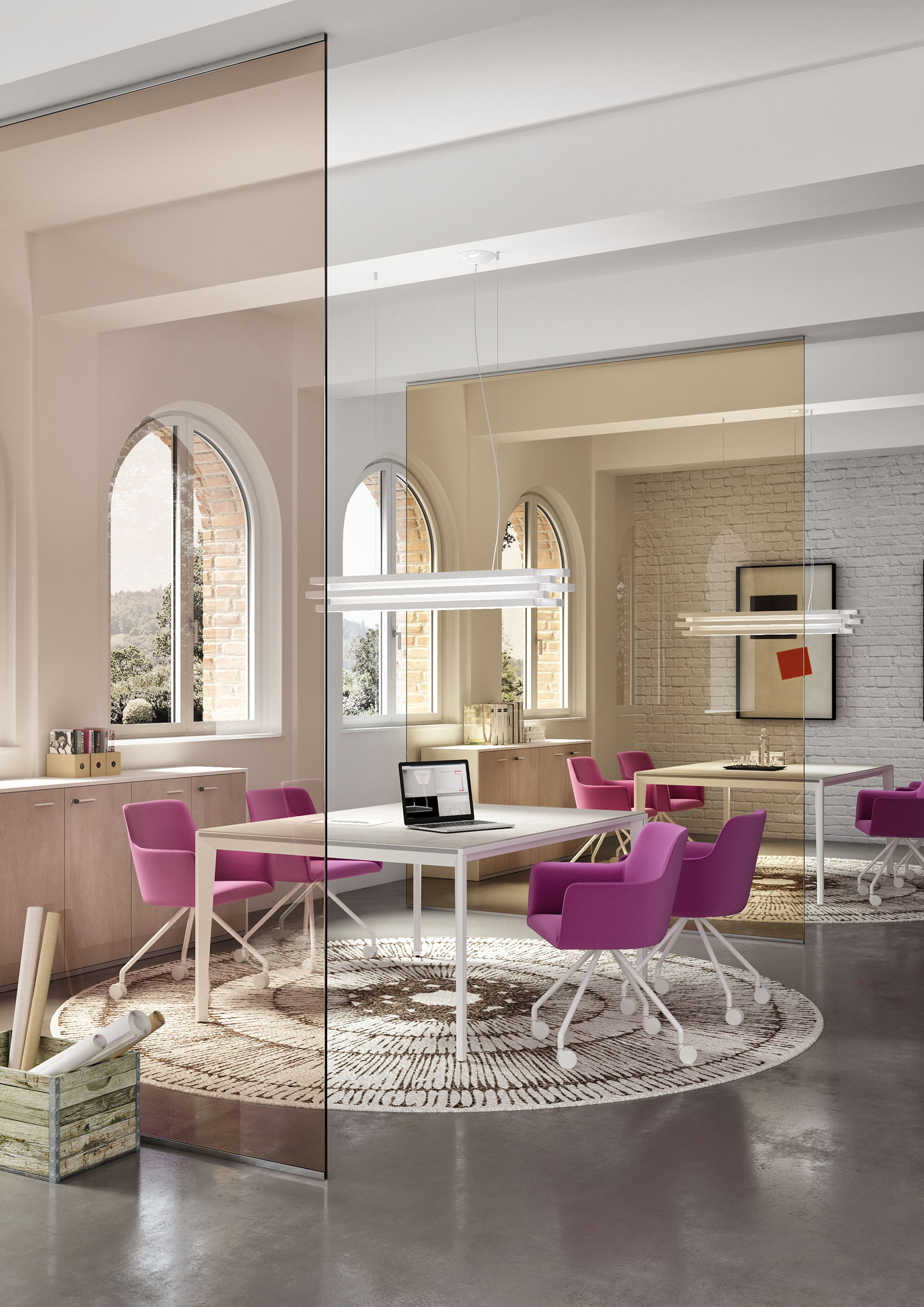 City est une gamme complète qui s’adapte à tout les environnements et situations compte tenue des différents piètements et finitions , sa forme fait de la gamme city, un produit confortable et cosy.