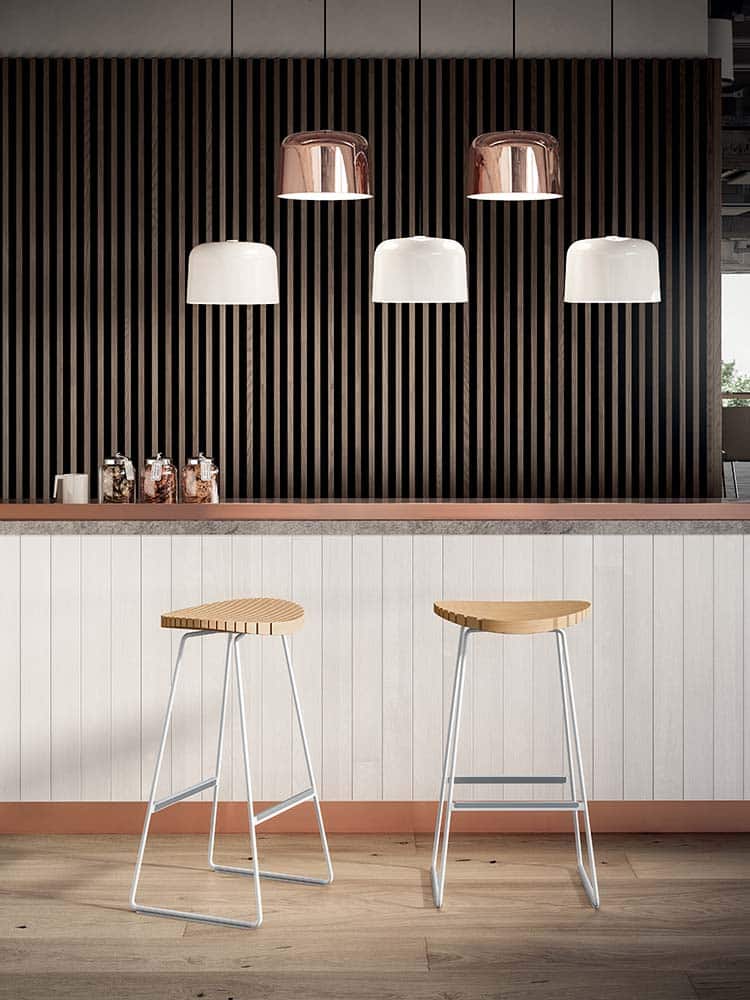 Moderne, ludique et éclectique : Clark est le tabouret idéal pour les espaces résidentiels mais également les espaces d’accueil et de restauration. Le design simple et contemporain fait référence à un style frais et rend ce meuble extrêmement polyvalent. Raffiné et particulier, le siège Clark est composé de nombreuses lattes de bois, placées côte à côte et entrecoupées de fines fentes : une solution qui donne de la stabilité au tabouret pour un style dynamique. La structure en tige d’acier et l’assise en bois créent un contraste adapté à une grande variété de contextes : rustique, industriel et moderne au style minimaliste.