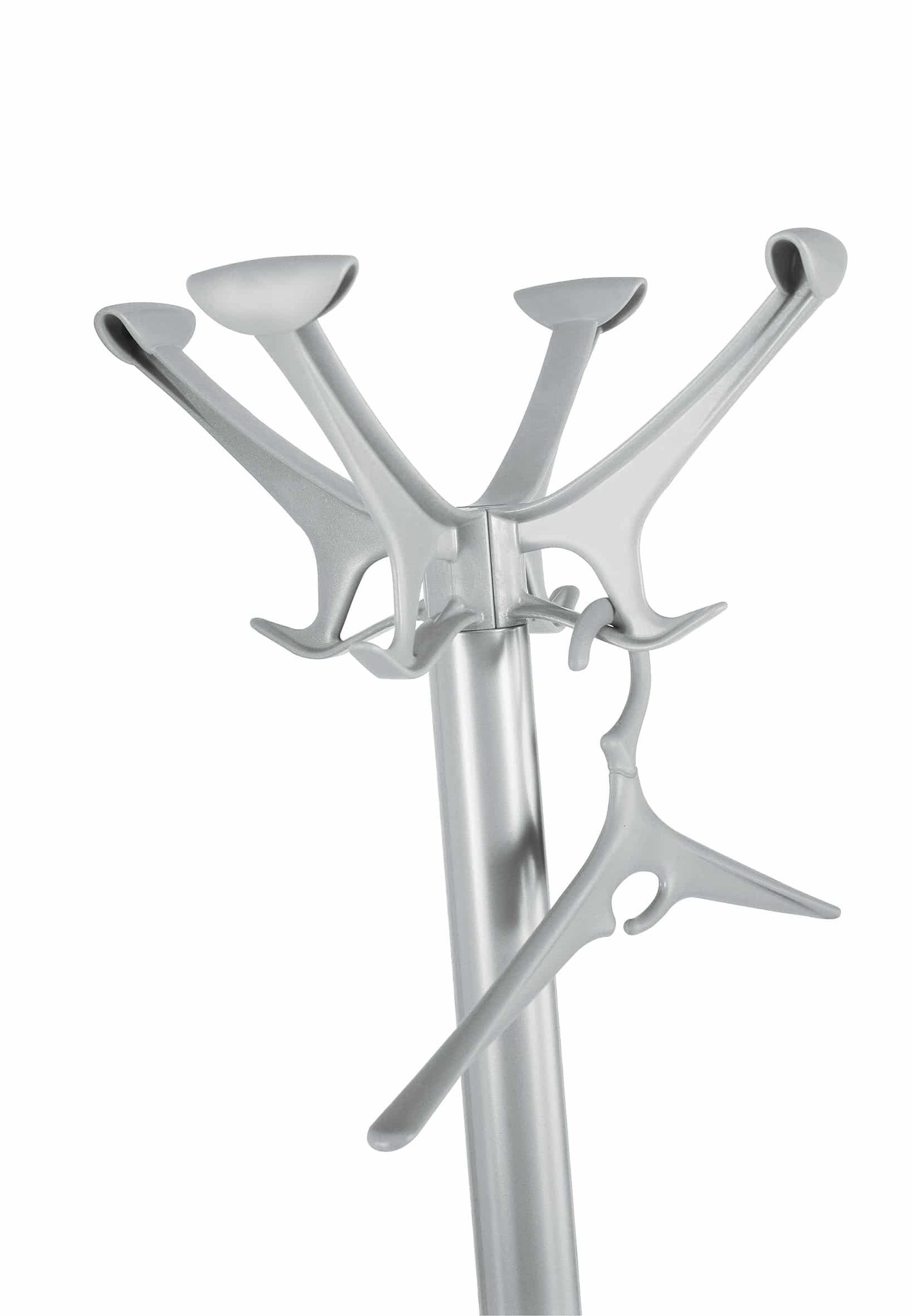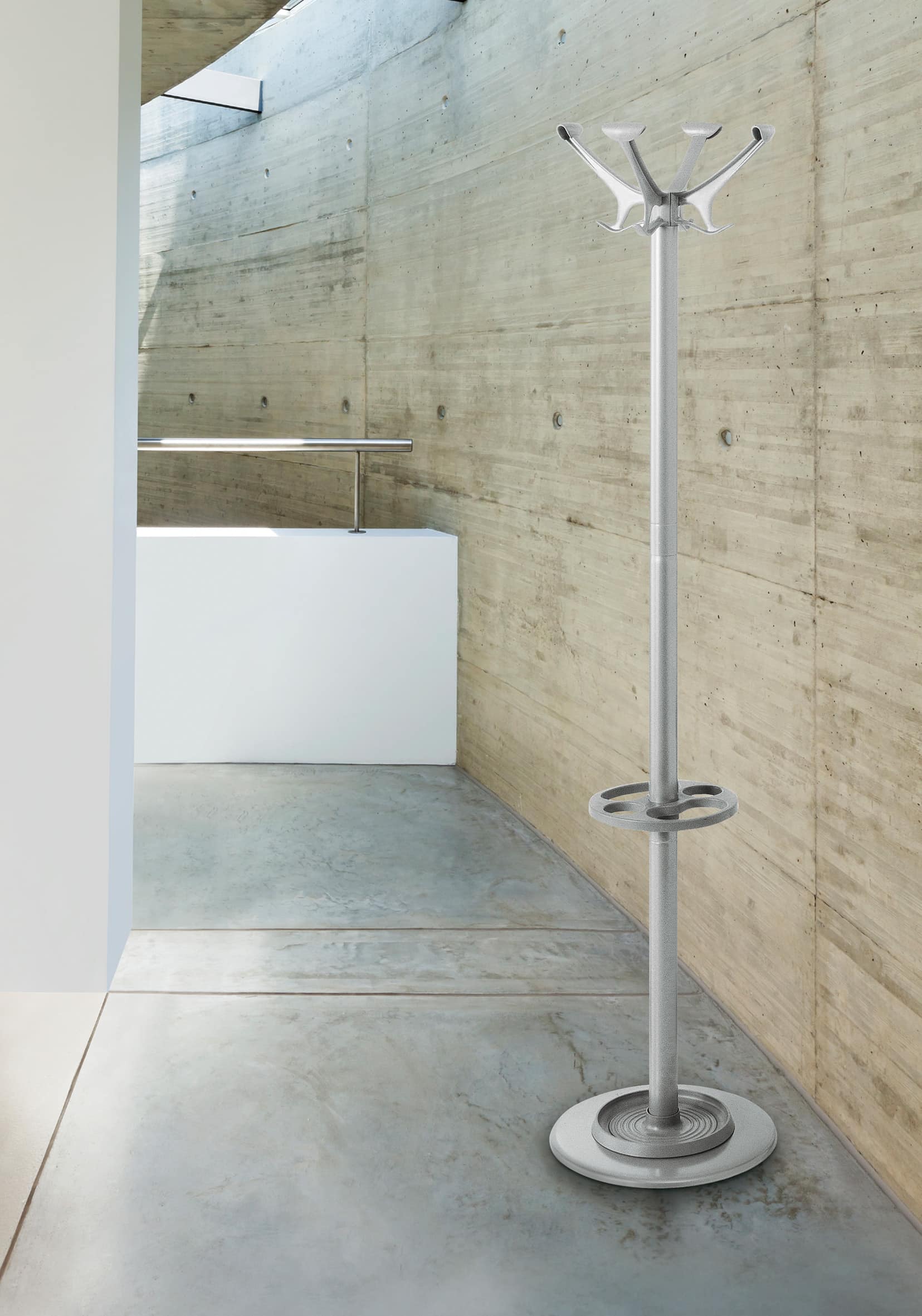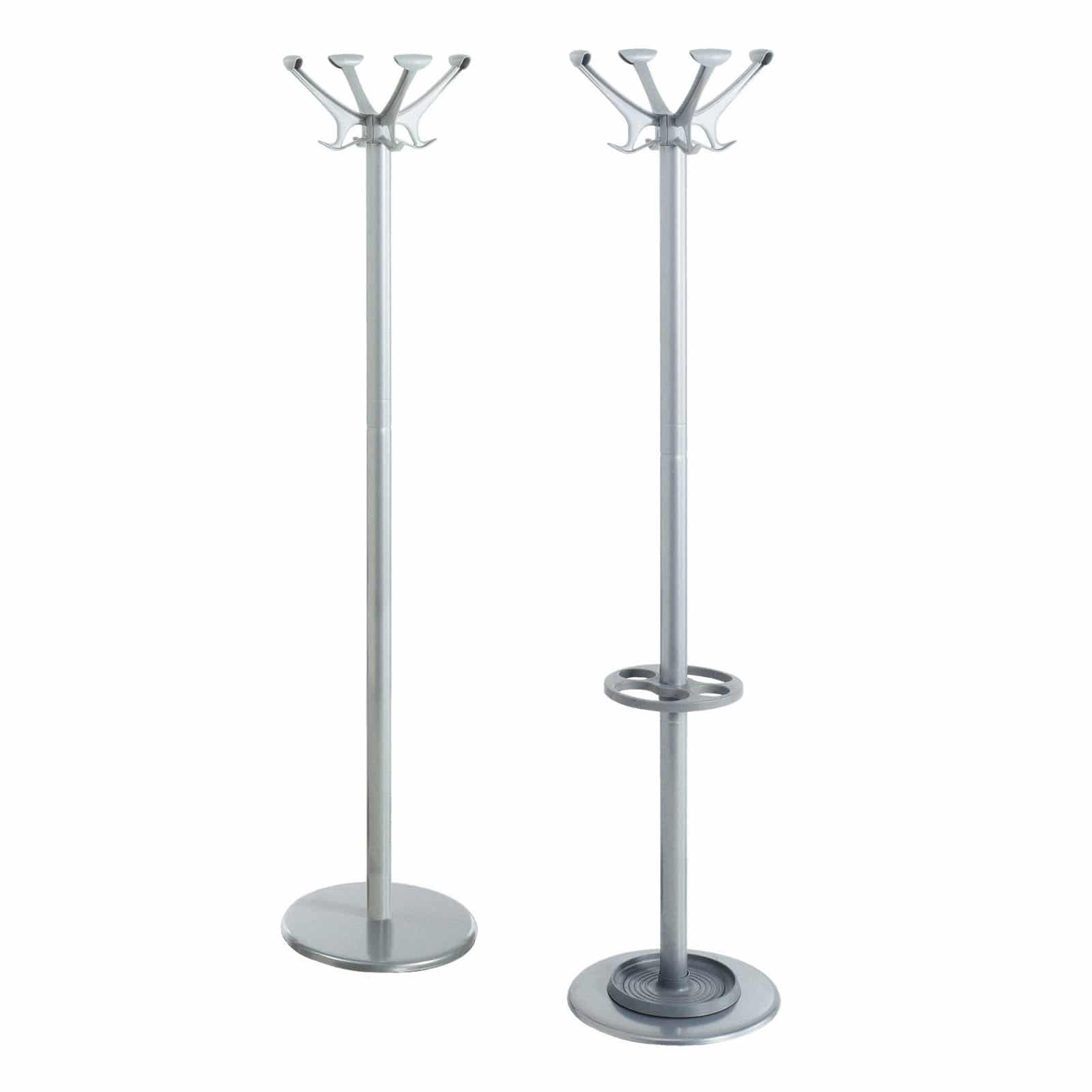 Portemanteaux avec corps en acier peint en époxy. Têtes en techno-polymère. Anneau porte-parapluies amovibles en techno-polymère