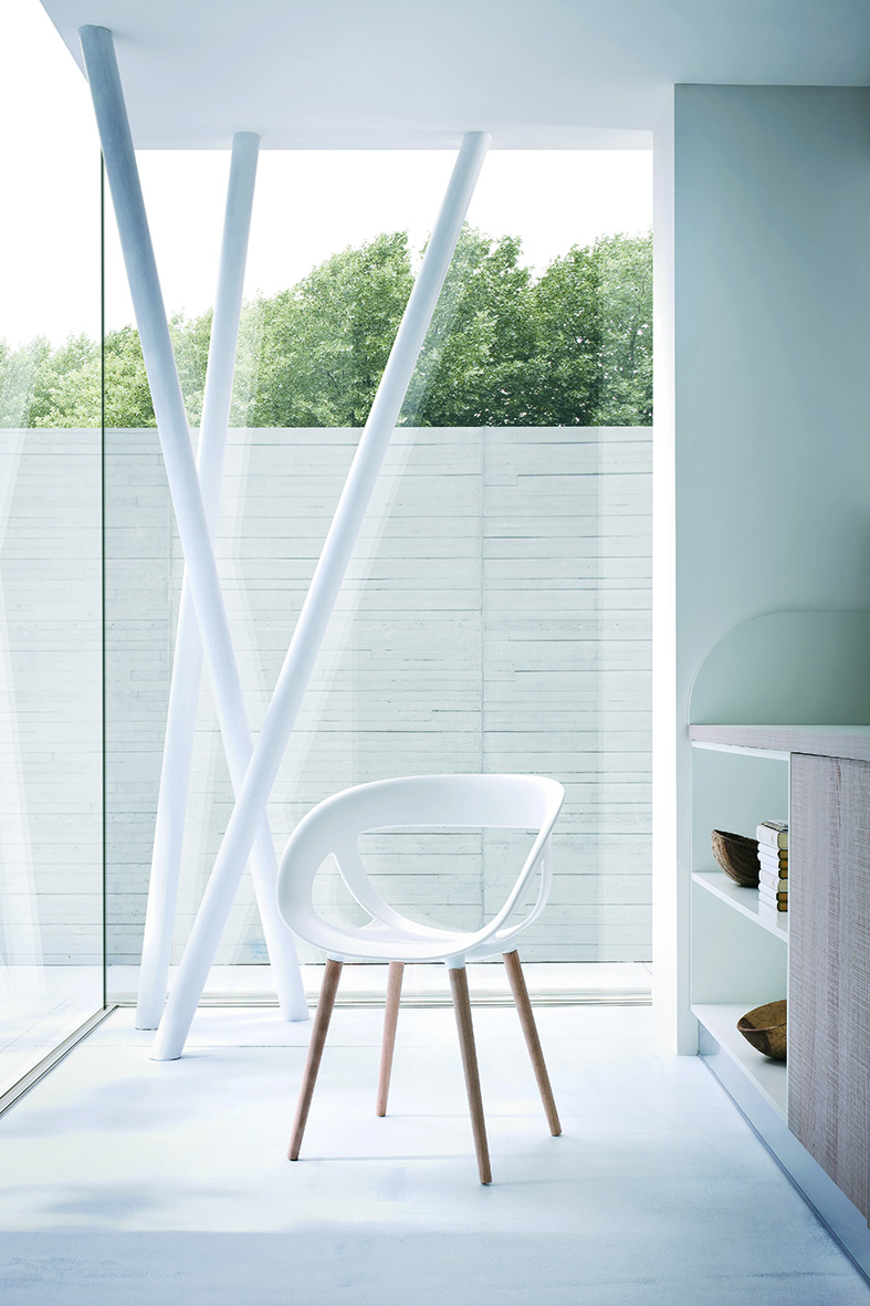 Moema un siège confortable et enveloppant sa coque en technopolymère est adaptée pour un usage extérieur, existe également en version rembourrée Moema se décline en de nombreuses finitions ; pour s’adapter à tout les espaces